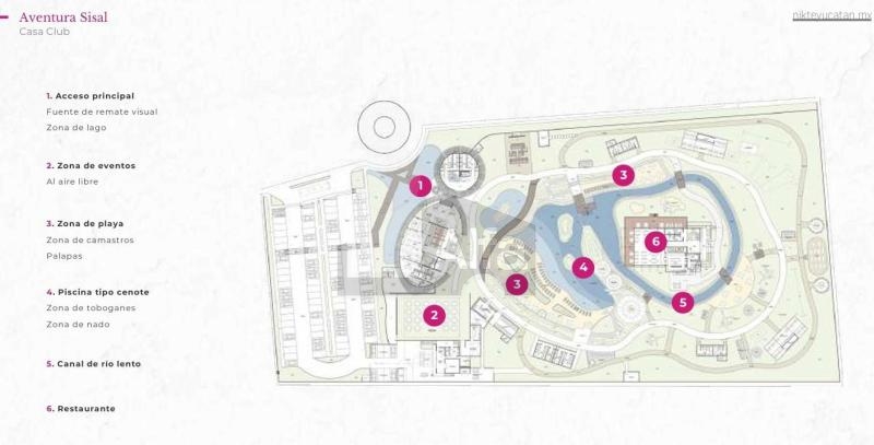 Waterpark, tirolesa, casa del árbol, zona yoga, ciclovía, canal de río lento, gimnasio, anfiteatro, petpark, fuentes interactivas, pabellones con asadores, piscinas, zona picnic,TRX, cancha de pádel... y mucho más